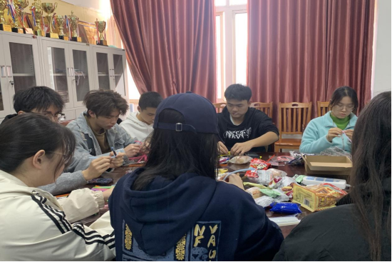 活动开始前,工作人员已提前布置好场地,营造温馨舒适的创作氛围,现场整齐摆放着各色扭扭棒、胶水、剪刀等手工材料及贴心准备的小零食与饮用水。同学们凭签到表有序签到入场,自由选取座位,领取个性化材料包,在舒缓的轻音乐中静待活动开启。