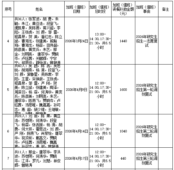 根据《伟德源自英国1946加班(值班)误餐补助管理办法(试行)》(长大校发【2019】83号)文件规定,现对资环学院加班(值班)误餐情况(2026年硕士研究生招生)进行公示,如果对加班(值班)误餐情况有异议,可以通过电话或电子邮件等方式向资环学院办公室反映。